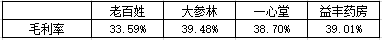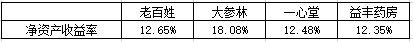 净利润方面,老百姓过去五年的复合增长率为20.6%,大参林的复合增长率为15.5%,一心堂的复合增长率为14.9%%,益丰药房的复合增长率为33.2%。