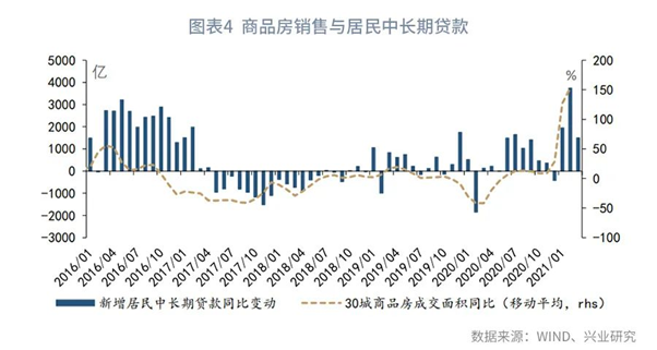 从企业部门来看,社融增速下降对企业部门存款的影响最为显著。2021年3月企业存款同比增长7.9%。这一水平介于2020年2月的6.3%和2020年3月的8.4%之间,反映出企业存款增速正在逐渐向疫情前的水平回归。企业存款是PPI的重要领先指标,企业存款增速下降可能拉低PPI。不过,从历史经验来看,企业存款同比领先PPI同比 9个月左右。这意味着企业存款增速下降对PPI的影响可能要到