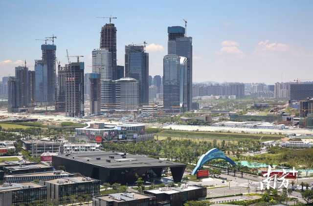 深圳前海高楼林立,正在建设的全球城市中心比肩纽约、曼哈顿,“世界级湾区客厅”面海而生。
