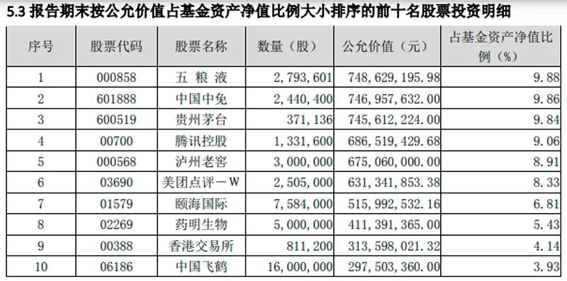 值得一提的是,刘彦春管理的部分基金可投港股,以景顺长城集英成长为例,截至3月底,基金前十大重仓股分别为五粮液、中国中免、贵州茅台、腾讯控股、泸州老窖、美团点评-W、颐海国际、药明生物、香港交易所、中国飞鹤。