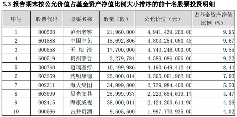 就调仓情况来看,以规模最大的景顺长城新兴成长为例,截至3月底,前十大重仓股分别为泸州老窖、中国中免、五粮液、贵州茅台、迈瑞医疗、药明康德、海大集团、晨光文具、海康威视、古井贡酒。