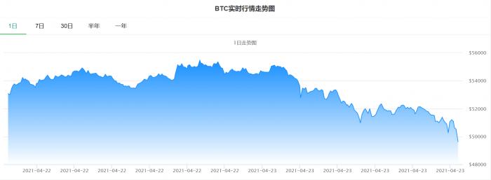 4月23日周五,Bitstamp实时数据显示,比特币跌破50000美元/枚,为3月8日以来首次。随后,比特币价格进一步跌破49000美元关口,日内跌幅超过8%。