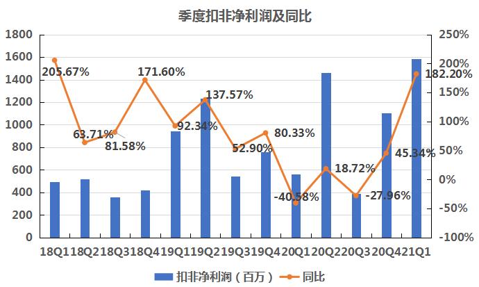 分季度来看,公司的扣非净利润增速跟收入增速趋势基本一致。但是波动幅度明显更大。