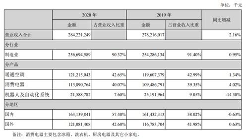 美的重新划分业务后首份年报:营收2842.21亿元,海外销售占比超40%