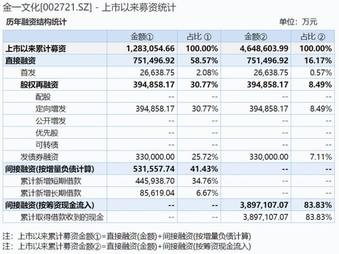 据21世纪经济报道记者统计,按增量负债计算,金一文化上市以来累积募资额度高达128.31亿元。