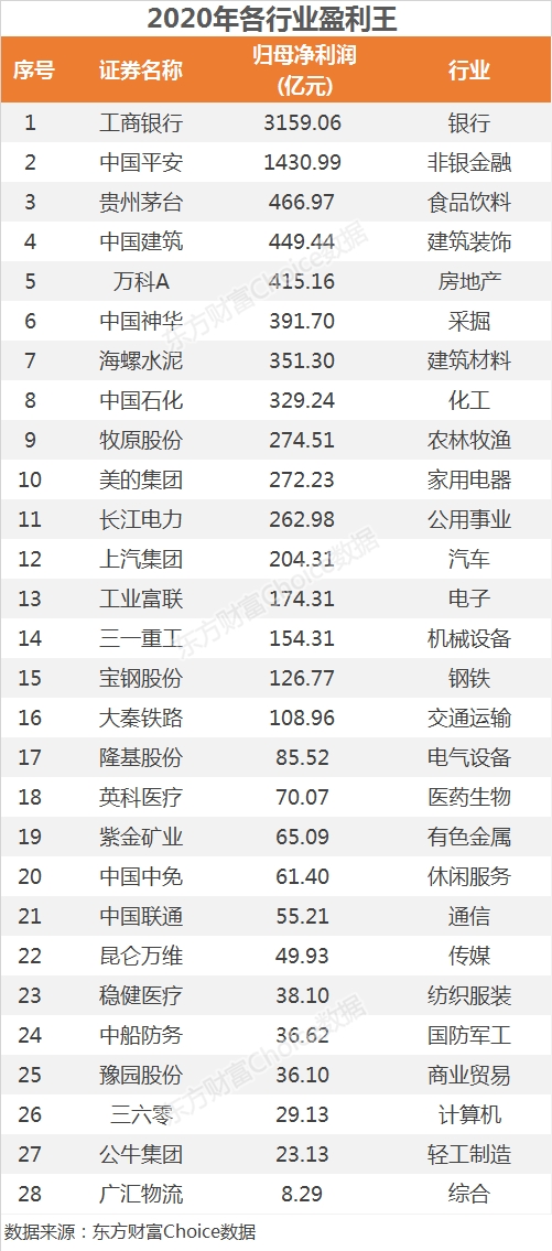 A股“赚钱王”是谁?28大“行业茅”出炉(附名单)