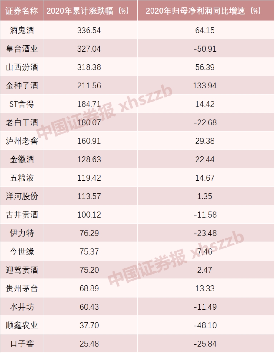 人均薪酬最高逾30万,11只股价翻倍最大涨逾3倍,最多赚467亿......2020年白酒之“最”来了