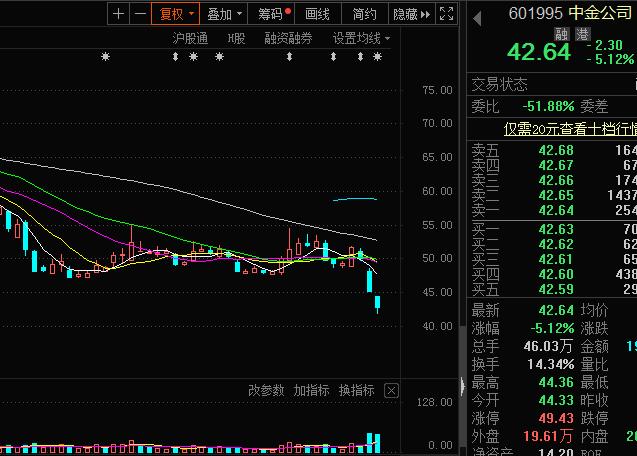 而被寄以厚望的另一个权重板块券商板块,在公布了平安重整方正集团的利好消息之后,相关个股反而是高开低走连跌2天。方正证券连受2根大阴线,头部券商中金公司昨天跌停,今天再大跌5%。券商指数再次创下了去年7月份以来的调整新低。进一步打击A股人气。缺少实质性的经营突破,A股市场表现不佳,券商的利好反而成了板块高开低走的导火索。