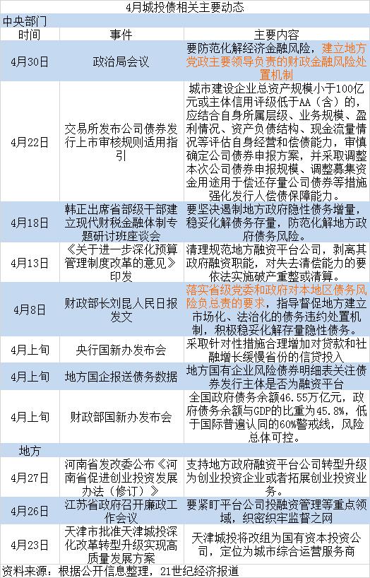 事件:中共中央政治局4月30日召开会议,分析研究当前经济形势和经济工作。会议提出,要防范化解经济金融风险,建立地方党政主要领导负责的财政金融风险处置机制。