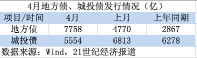 4月Wind口径下城投债发行规模为5554亿,环比同比均有所下降。