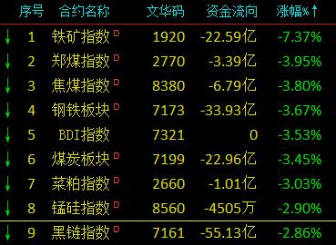 黑色系炒作明显降温!78亿资金集中撤离黑链、煤炭期货,申万钢铁板块重挫逾5%