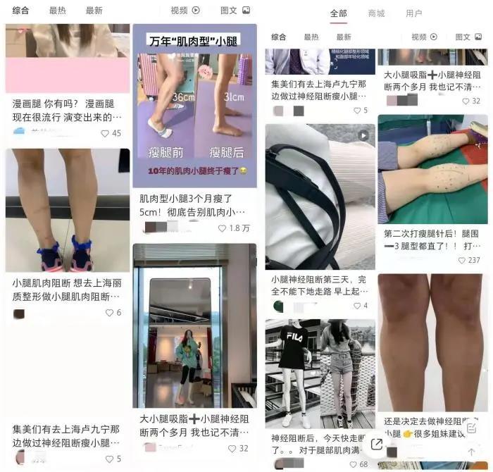 从网友分享来看,以爱美为目的的“小腿肌肉阻断术”背后,是女生对“漫画腿”的追求,对腿部肌肉线条的嫌弃。再仔细想想,近些年社交媒体上对于身材标准的要求层出不穷,本质上都是对“白瘦幼”的绝对推崇。