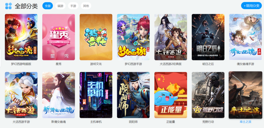 以网易CC平台为例,与斗鱼、虎牙兼顾主流游戏的分区结构相比,网易CC平台中主打游戏为《梦幻西游》《大话西游》《阴阳师》《明日之后》《率土之滨》等网易游戏旗下产品。