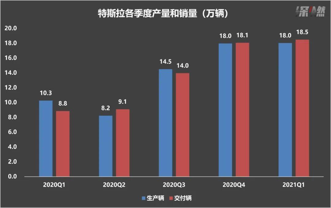 特斯拉各季度产量和销量