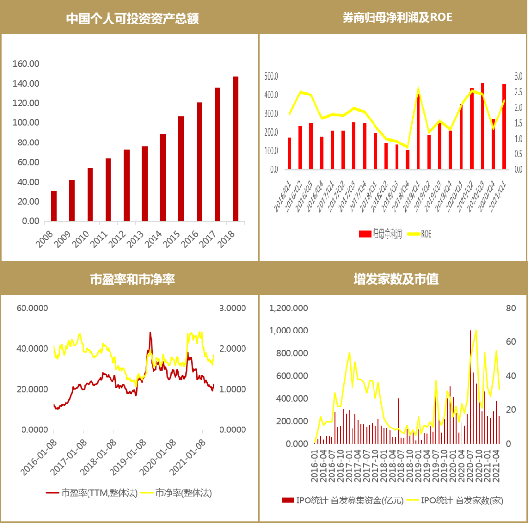 财富管理业务进入加速发展期:中国证券业协会第七次大会上表示建设高质量的投资银行和财富管理机构。居民财富快速积累,当前个人可投资资产超过200万亿,高净值人群财富管理需求旺盛,我们认为权益类产品中短期有望迎来爆发。