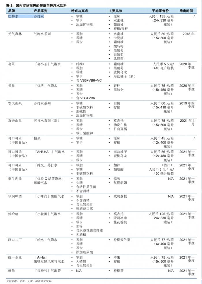 可口可乐中国合作方中国食品2020年财报显示,当年,其汽水收入为133.14亿元,仅同比增长4.0%,其中,“无糖”、“纤维+”系列销售录得近 50%的同比增幅,远超传统汽水增幅。中国食品汽水品类在经营区域内保持了较高市占率(超过 60%)。