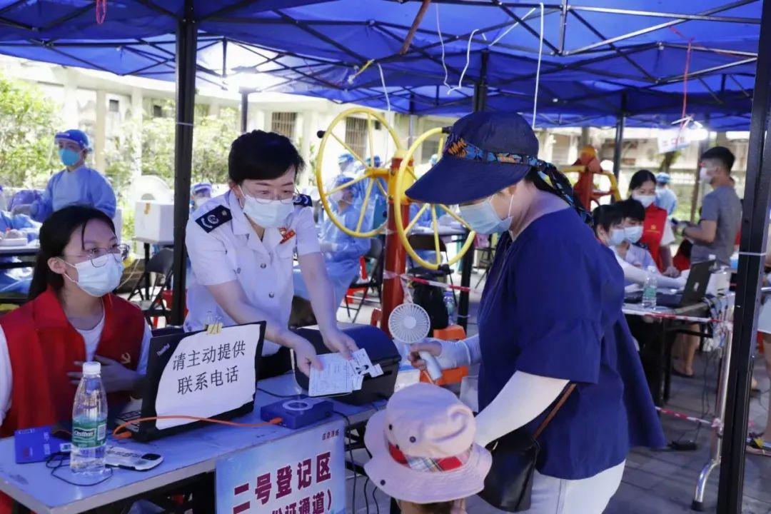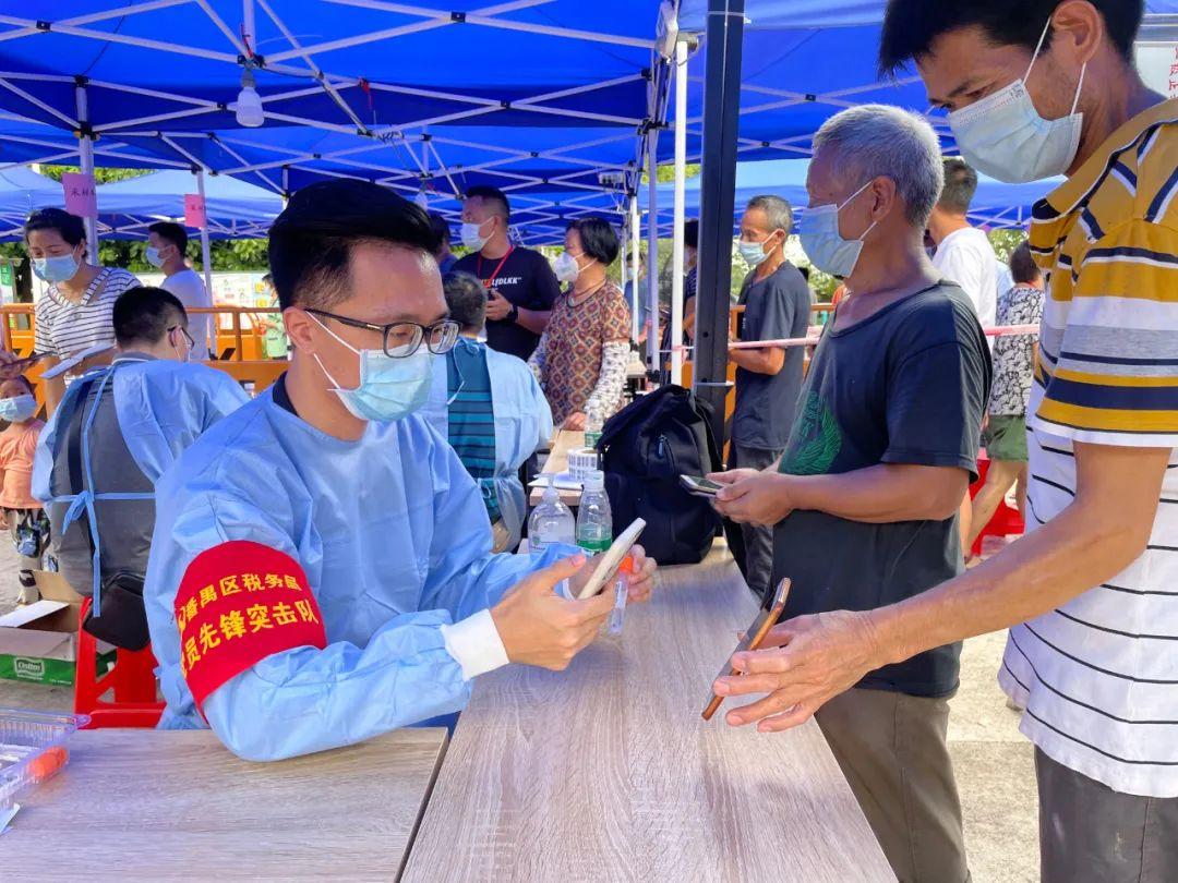 据统计,在广州,412名税务党员、团员组成志愿服务队,就近参与社区大规模人员核酸检测、关键场所联防联控、社区群防群治等工作。在佛山,3支税务党员抗疫先锋队、近400名税务干部分批下沉社区,从事核酸检测指引、资料录入等工作,全力支援社区疫情防控工作。