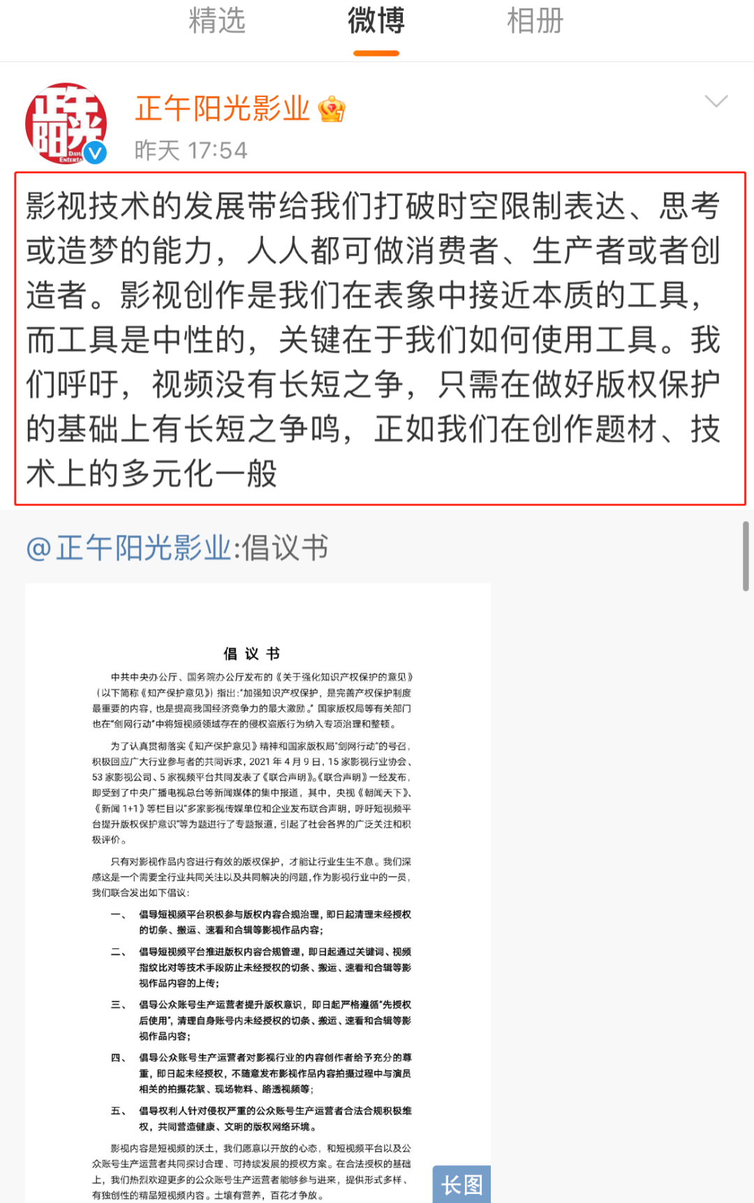 正如正午阳光在微博上所说的:工具是中性的,关键在于我们如何使用工具。视频没有长短之争,只需在做好版权保护的基础上有长短之争鸣。
