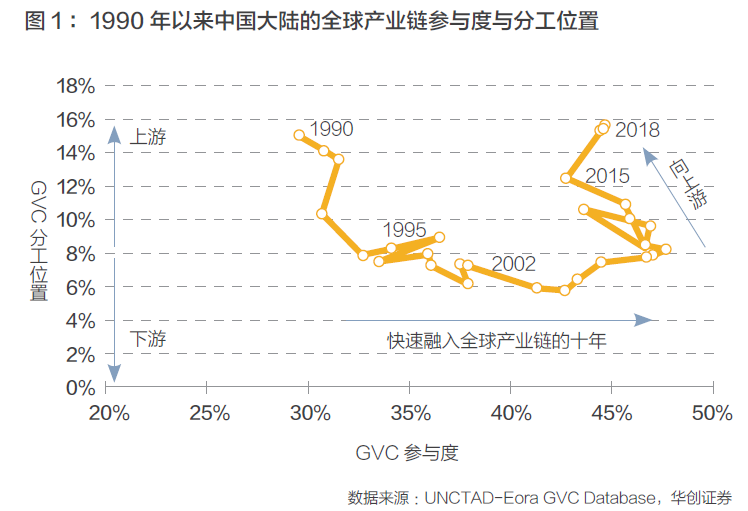分散化以增强产业链的抗风险能力。这次新冠疫情让不少发达国家认为:把供应链集中在一个国家是有很大风险的,容易受突发事件影响全球价值链布局,他们不可能像过去那样将其集中于某一区域,而极有可能是分散布局在全球各个主要国家。例如,东亚和东南亚供应链很有可能在形成以“中国+”为特点的分散化。短期内由于东南亚国家的整体工业能力偏弱,中游的转移需要相当长的时间,但已经向东南亚转移的服装鞋靴等劳动密集型产业会进一步加速。事实上,贸易流从中国大陆转移到东南亚国家或地区的趋势在2013 年前后已经出现。
