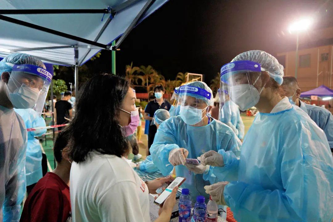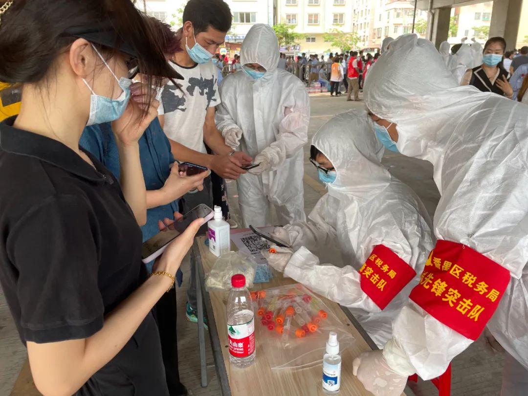 图为广州市番禺区税务局组织抗疫志愿服务队,就近就便参与社区大规模人员核酸检测。