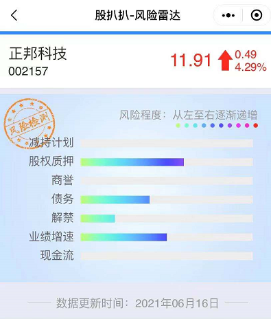 虽然有不少投资者对正邦科技抱有希望,认为公司既有良好的资金储备,又能产生足够多的经营现金流。但在供过于求的背景下,公司必定面临冲击。所以想要综合分析该股的风险,我们还可以打开股扒扒,查看一下该股的风险所在。