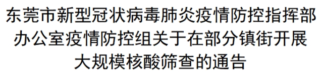 东莞紧急通告!5个镇街进行全员核酸检测