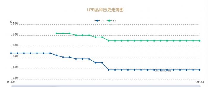 中国人民银行授权全国银行间同业拆借中心公布,2021年6月21日贷款市场报价利率(LPR)为:1年期LPR为3.85%,5年期以上LPR为4.65%。以上LPR在下一次发布LPR之前有效。