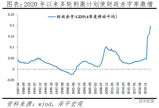 赤字式大规模财政刺激不可持续。美国经济形势逐渐步入正轨,实际通胀水平和通胀预期不断升温,就业市场向充分稳定就业水平逐步修复,未来对财政政策进一步宽松的需求下降,通过天量发行债券的赤字式大规模财政刺激将逐步淡出。