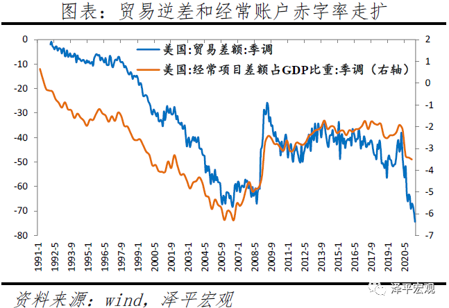 一方面,2020年以来的落地的多轮财政刺激法案使财政赤字率激增;另一方面,美国国内产业链供应缺口问题以及美元流动性泛滥导致的美元阶段性贬值,引发贸易赤字在年内不断扩大。美国双赤字扩大,对未来美国政府大规模赤字式财政支出造成阶段性约束,高赤字支撑式的财政支出不可持续。未来拜登政府力主推出的《美国家庭计划》和《美国就业计划》更多需要依靠税收政策支撑,利用公司税和资本利得税提升财政收入、平滑债务负担迫在眉睫。总的来看,未来美债供给速度边际放缓,美联储通过持续性资产购买扩表的速度也会有所降低,缩减资产购买具有内在必然性。