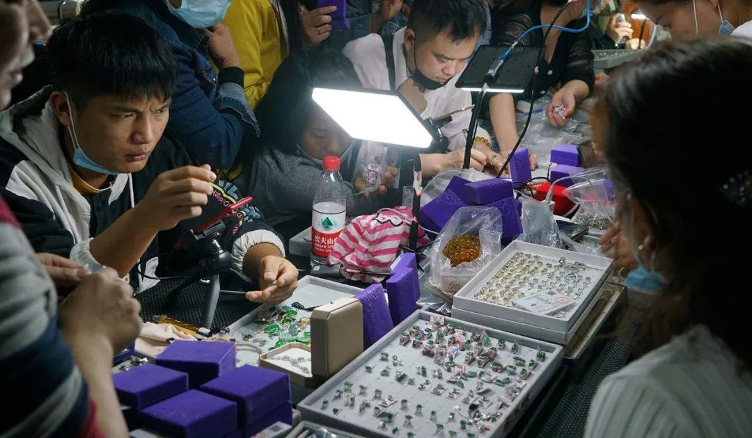 2017年起,以云南瑞丽为代表的“赌石”直播(消费者拍下玉石原石后,主播现场直播开原石),开启了珠宝行业的“直播首秀”。