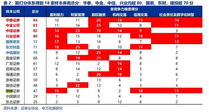 不过,这份对信用业务的评价似乎有些草率。因为申万宏源的“券商高质量发展指标体系”,评出了信用业务能力较强的5家券商分别是:华泰、东财、兴业、华林、中信。