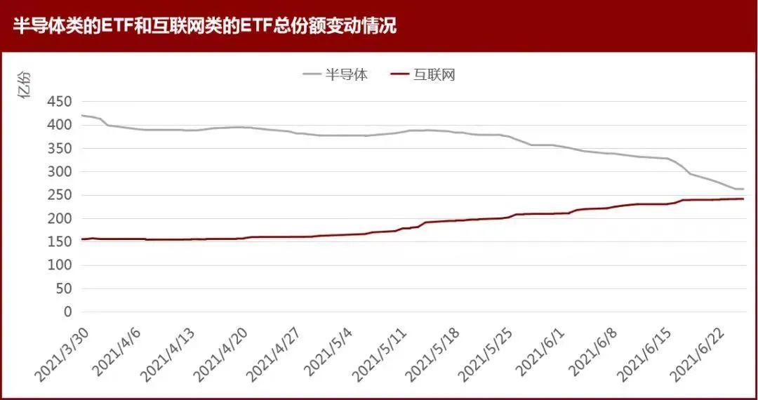 注:半导体类ETF统计包含投资于半导体的5支主要ETF;互联网类ETF统计包含投资于互联网行业的6支主要ETF。