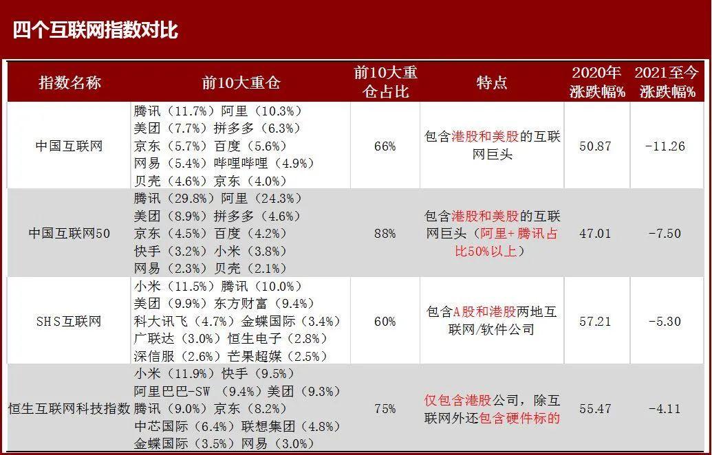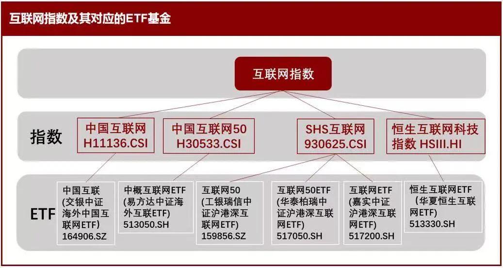目前市场上主要追踪中国互联网公司的指数有4个,分别对应ETF基金共6只。