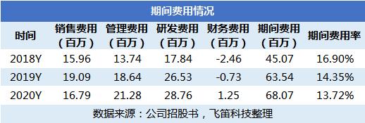 在报告期内,公司期间费用分别为4507万元、6354万元及6807万元,期间费用率分别为16.90%、14.35%及13.72%。从数据来看,在报告期内随着公司营业收入规模的增长,期间费用虽持续上升,但期间费用率略有下滑。期间费用率略有下滑,主要是由于期间费用增速略低于营业收入增速。