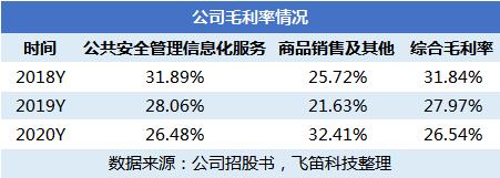 在报告期内,公司综合毛利率分别为31.84%、27.97%及26.54%。从数据来看,公司综合毛利率持续下滑。从分业务来看,主要是由于主营业务公共安全管理信息化服务毛利率的持续下滑所致。从招股书来看,主要是由于公司随着项目数量的逐步增加,部分大型项目毛利均低于30%;同时,由于市场竞争激烈,公司为扩展新市场报价相对较低,使得公司向新客户承接的项目毛利率相对较低。