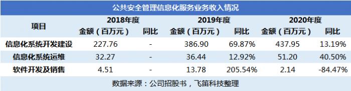 在报告期内,信息化系统开发建设业务收入虽逐年增长,但2020年收入增速较2019年大幅下滑,导致了整体业务收入增速的下滑。对于收入增速下滑,公司称主要是由于2020年度,受到新冠疫情的影响,上半年度在建项目速度延缓,新承接的公安信息化开发建设项目减少,导致业务收入增速明显下降。