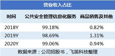 报告期内,公司营业收入来源于公共安全管理信息化服务业务和商品销售及其他业务。其中,公共安全管理信息化服务业务是公司主要的收入来源,占比均大于98%,公司主营业务突出。