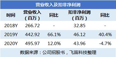 数据显示,公司在2020年共实现营业收入4.96亿元,同比增长12.0%,扣非净利润为4396万元,同比下滑4.7%。从数据来看,公司2020年业绩下滑,营业收入规模虽有所增长,但扣非净利润出现负增长。