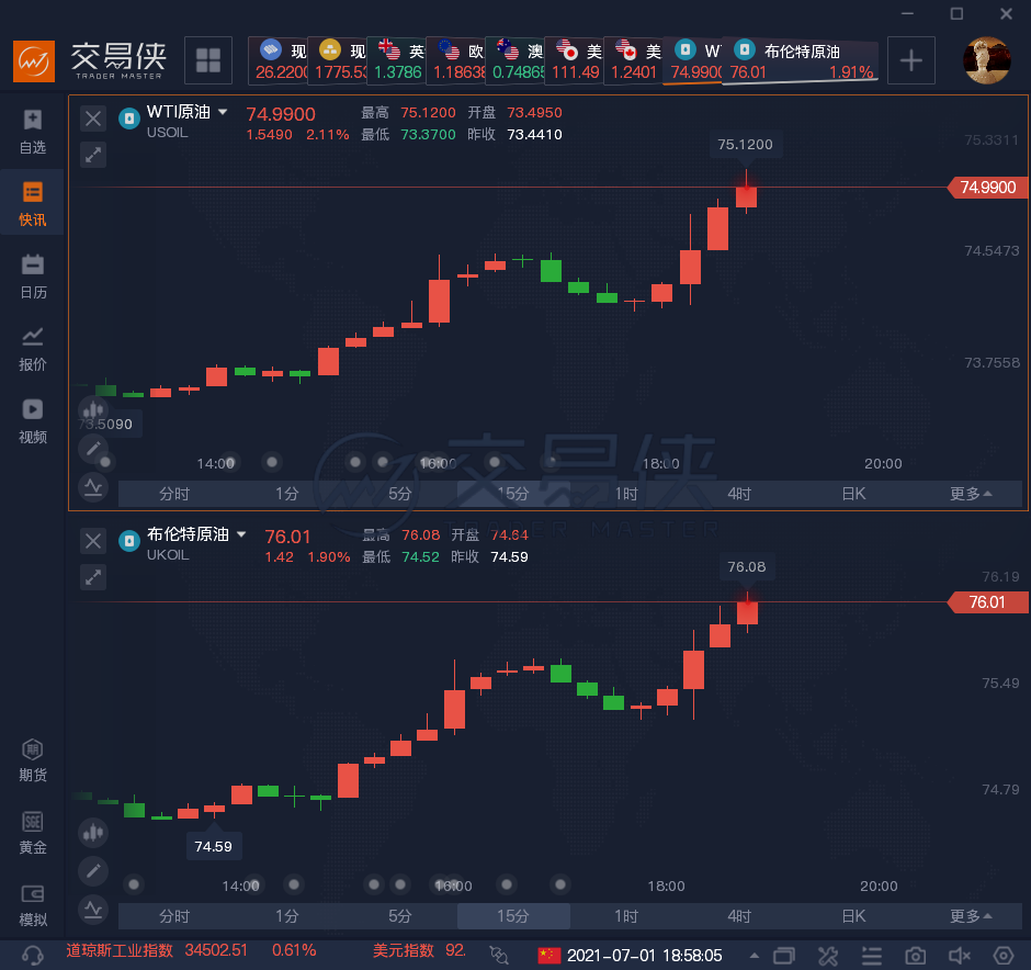 消息传出后,布伦特原油期货站上76美元/桶,WTI原油期货站上76美元/桶,为2018年10月以来新高。
