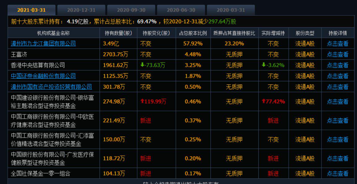 ▲片仔癀前10大股东 来源:同花顺iFinD