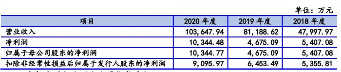据其招股书披露,2018年至2020年报告期,欣巴科技营收分别为4.8亿元、8.12亿元和10.36亿元,实现净利润分别5407.08万元、4675.09万元和1.03亿元。