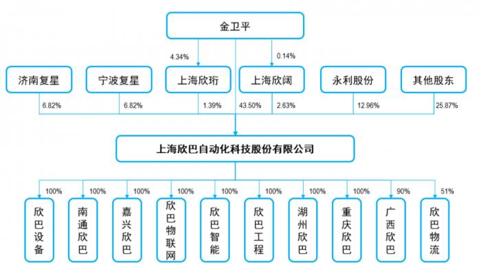 2017年12月29日之后,欣巴有限的控股股东、实控人变更为金卫平。经过历次股权转让和增资后,截至招股书签署日,金卫平直接持有欣巴科技43.50%的股权,并通过上海欣阔、上海欣珩间接控制公司合计4.02%的股份。因此,金卫平为欣巴科技的控股股东及实控人。永利股份仍持有欣巴科技12.96%股权,为公司的第二大股东。