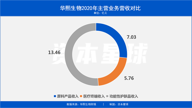 爱美客比华熙生物市值略大(爱美客市值1383亿元,华熙生物市值为1110亿元),但从营收来看,还是华熙生物更占优势。爱美客2020年实现营业收入7.09亿元,增长27.2%。而华熙生物2020年实现营业收入26.3亿元,增长39.6%。华熙生物因为拥有全产业链优势,始终能保持较高的增长速度。