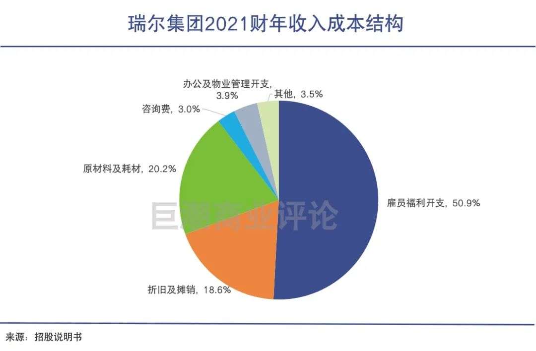 招股书显示,2019-2021财年瑞尔集团的收入成本中,雇员福利开支都占据绝对大头,分别占总收入成本的50.5%、50.7%和50.9%,高于原材料和物业租金等费用成本。
