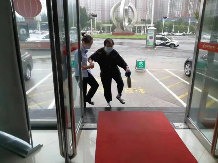 “阿姨您慢点!小心,地面有点湿,我扶着您上台阶!”看到一位老人在门口张望,邮储银行郑州新密市支行大堂经理赶紧跑出去扶着老人进了网点。原来,老人担心暴雨天气影响手机支付,一大早冒雨来到邮储银行支取现金。刚走到门口,邮储银行的工作人员就迎了上来。“邮储银行的服务真周到,没想到雨这么大你们还营业!”得知老人的需求后,工作人员赶紧领着老人,帮助她支取现金。