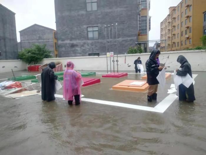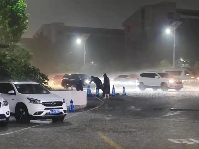 身处洼地的郑州新郑4站成了一片“海洋”,为了及时将站内积水排出,该站员工何庆升、王东峰、王云飞、梁洪连四人立刻联系铲车帮助站内进行排水作业,并冒雨将站口排水井盖打开,固定好警示墩。