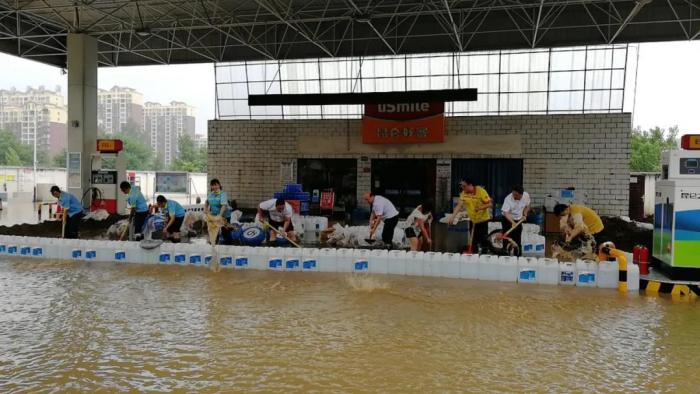 面对特大暴雨,中国石油立即启动应急预案,河南销售全体员工众志成城,战汛保供。