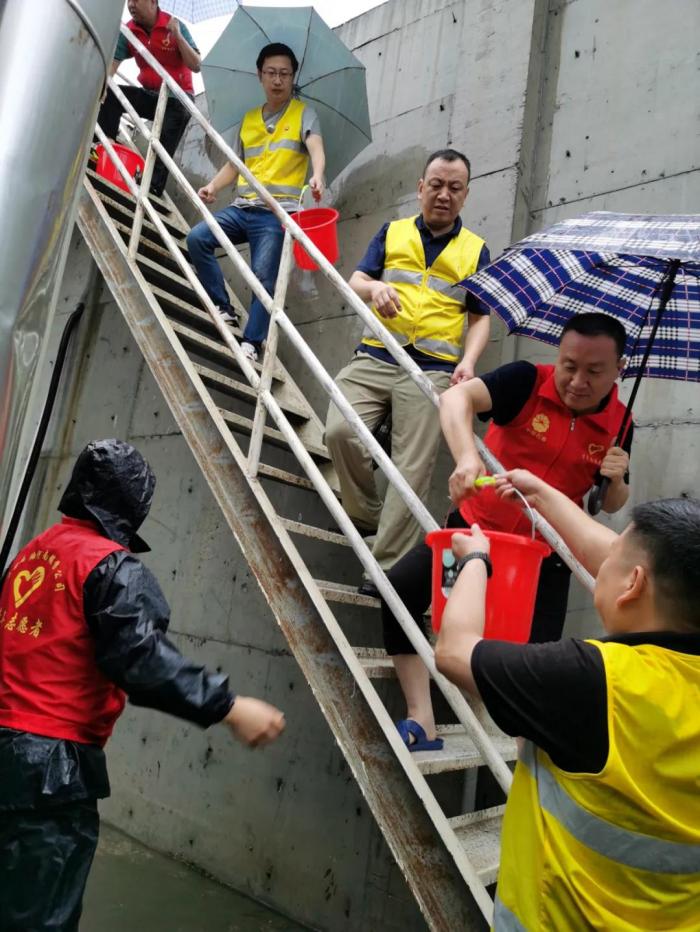 河南销售新乡延津2站站内积水深达50公分,在新乡分公司应急领导小组的指挥下,该站立即停止营业,大家冒着大雨,争分夺秒抢险。