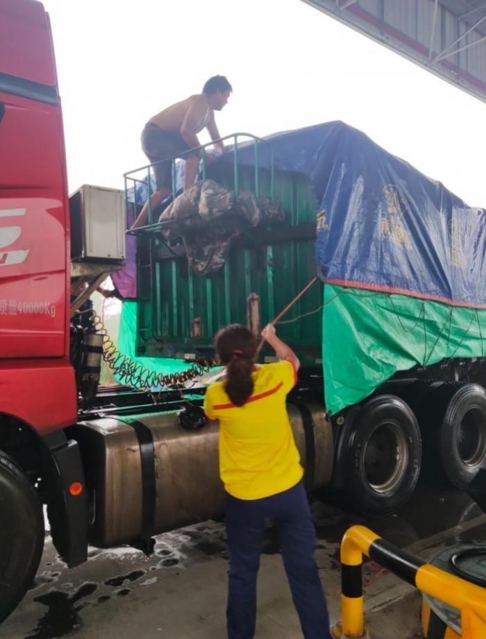 河南销售中联22站员工不惧风雨,积极帮助周边客户推车。
