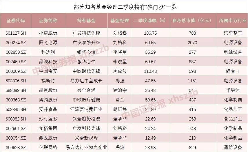 顶流基金经理都有哪些“独门绝技”?中证君梳理顶流基金的重仓股发现,不少基金经理挖掘到一些不在公募基金前50大重仓股名单中、其他基金经理未重点持仓且二季度涨幅较大的“独门股”。